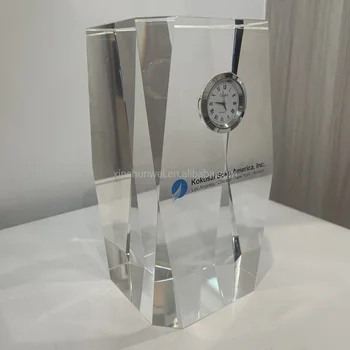 Custom Crystal Commemorative Clock with Engraved Logo for Corporate Gift Office Decoration Souvenir Award